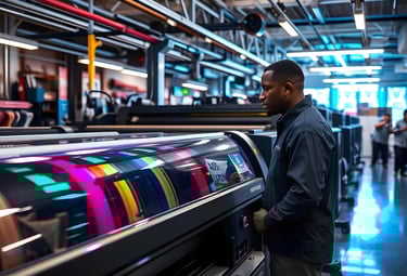 Simplifiez vos projets avec un partenaire unique. Nous maîtrisons toute la chaîne : conception graphique, mise en page et impression grand format (bâches, vinyles, roll-up) avec une technologie haute résolution.