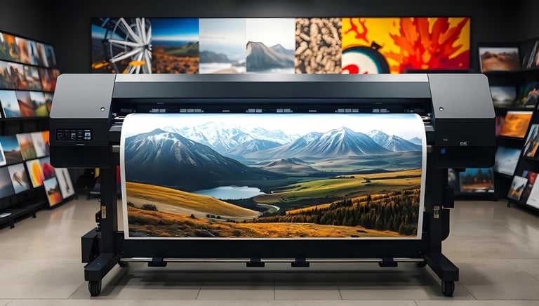 Tandem Africa Events dispose d’un équipement professionnel d’impression grand format d’une largeur de 1,8 m, utilisant une technologie éco-solvant haute résolution, garantissant des rendus précis, durables et adaptés aux usages intérieurs comme extérieurs.